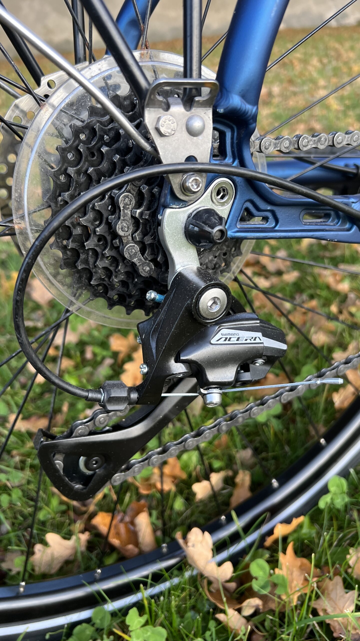Rattal peal Shimano mineraal õliga ketaspidurid, Shimano Acera käiguvahetajad ja Shimano jooksud. Rattal just äravahetatud raamikõrv ja käiguvahetaja.